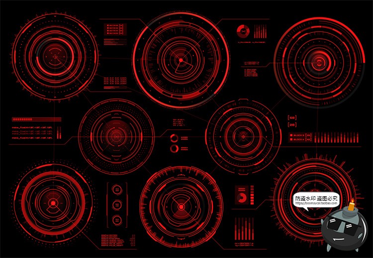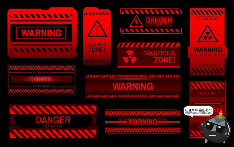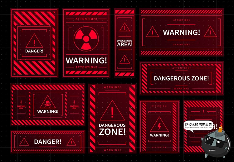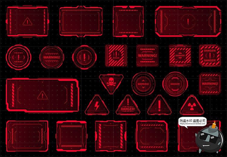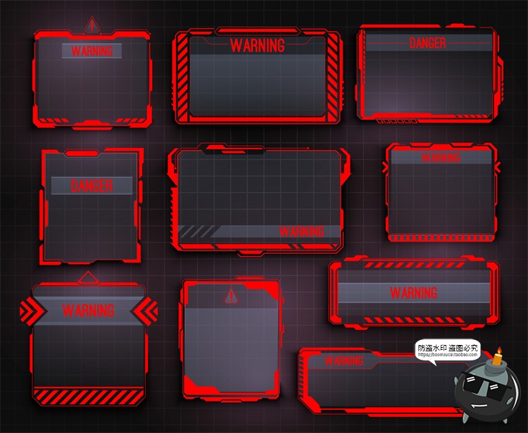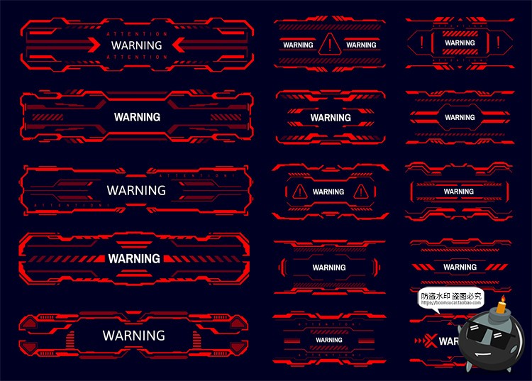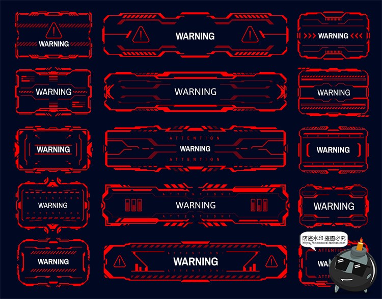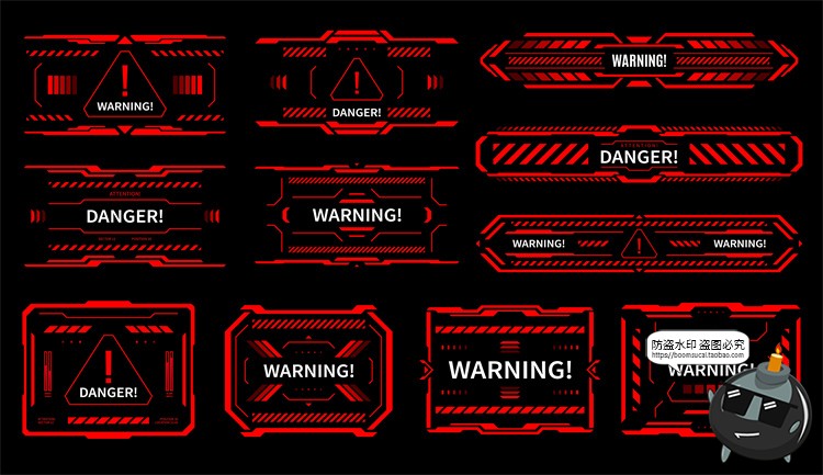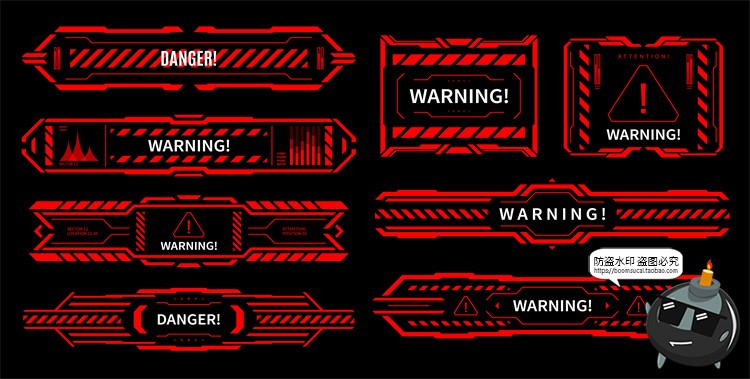 危险警告信号HUD红色科技边框提醒弹窗元素交互界面矢量图AI素材