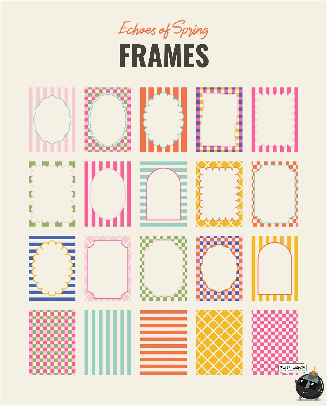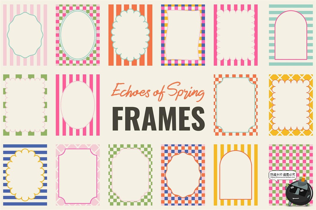 复古趣味花园派对文艺活力条纹方格网格边框PNG免抠AI矢量图素材