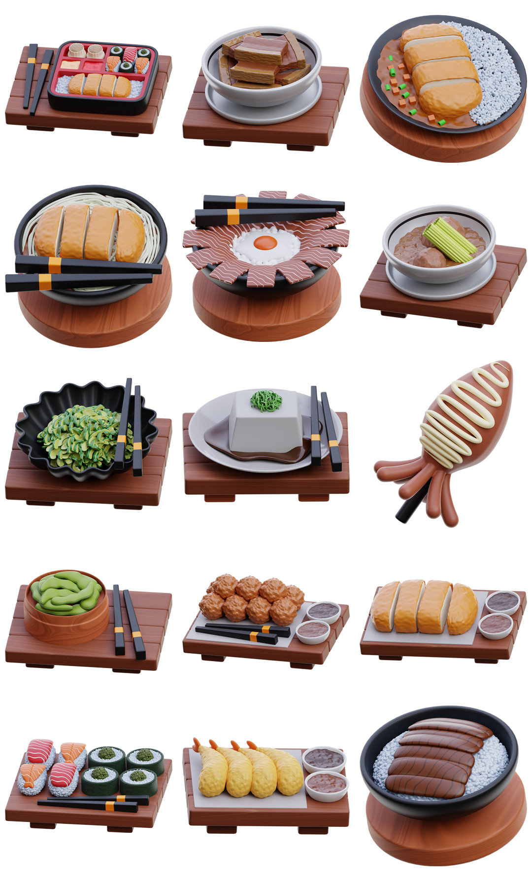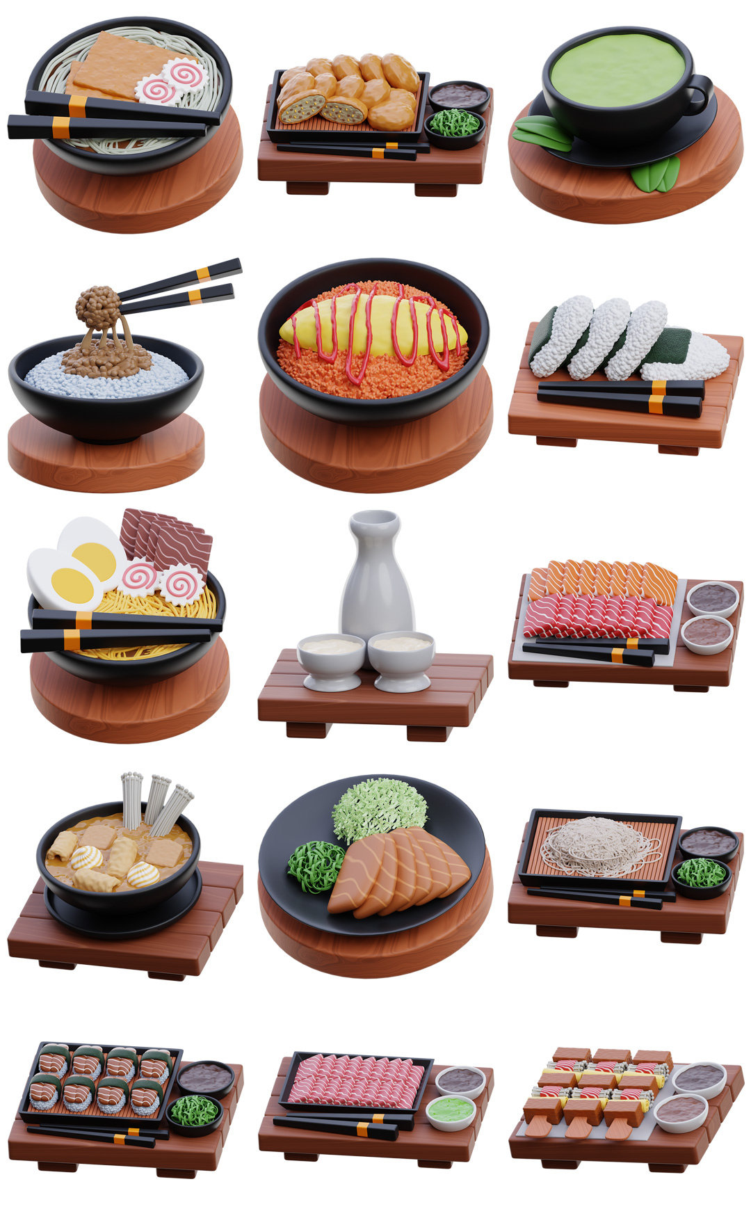3D立体卡通日料寿司泡面主食餐厅美食插图插画PNG免抠图片素材