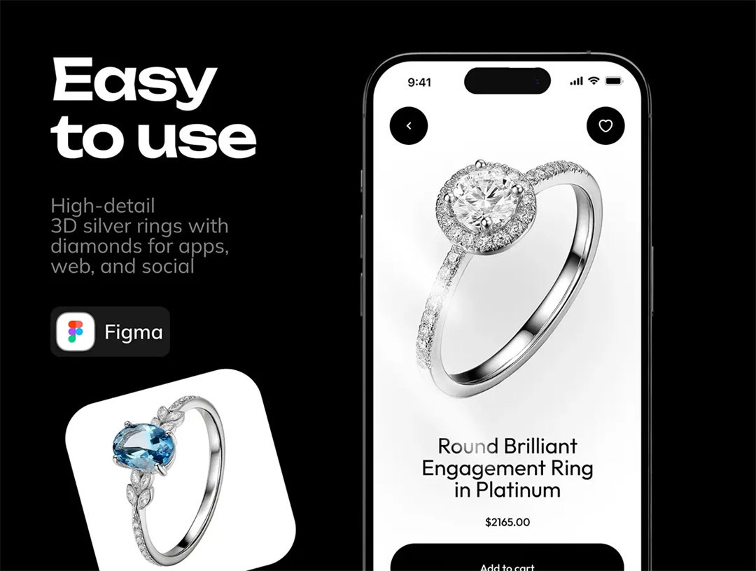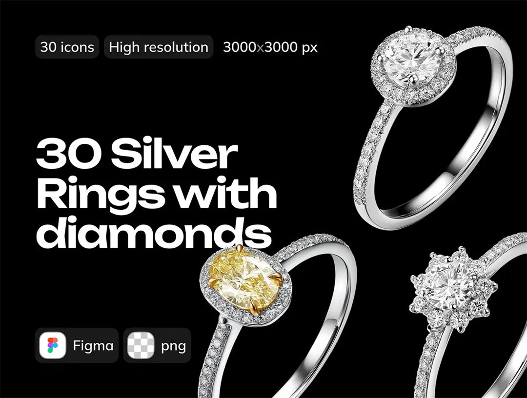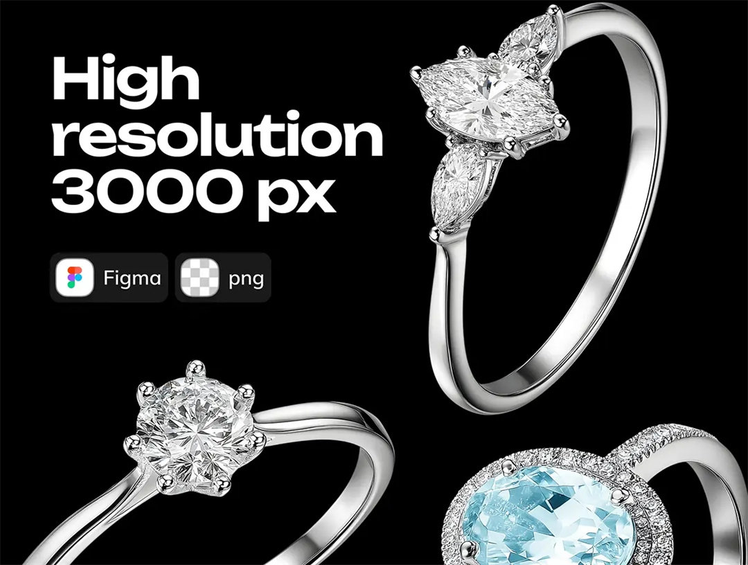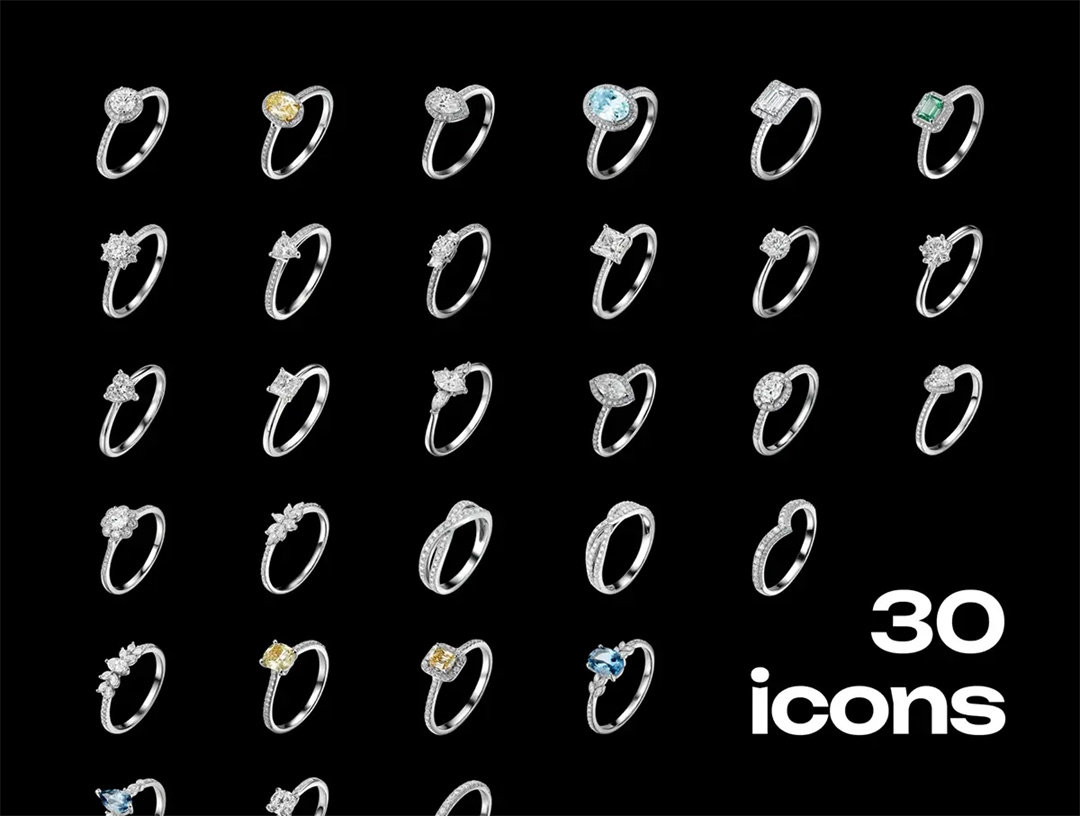 3D高清钻戒珠宝戒指细节图元素手账婚礼装饰PNG免抠图插画素材
